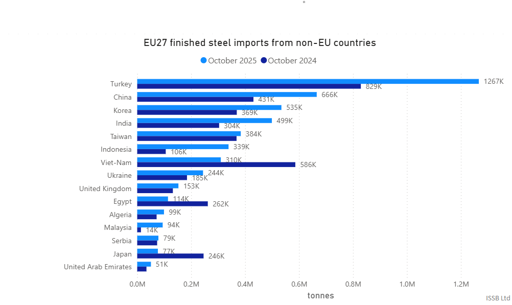 18 December 2025: In October, European consumers significantly increased imports of finished steel products ahead of the next phase of the Carbon Border Adjustment Mechanism (CBAM), set to take effect in 2026.